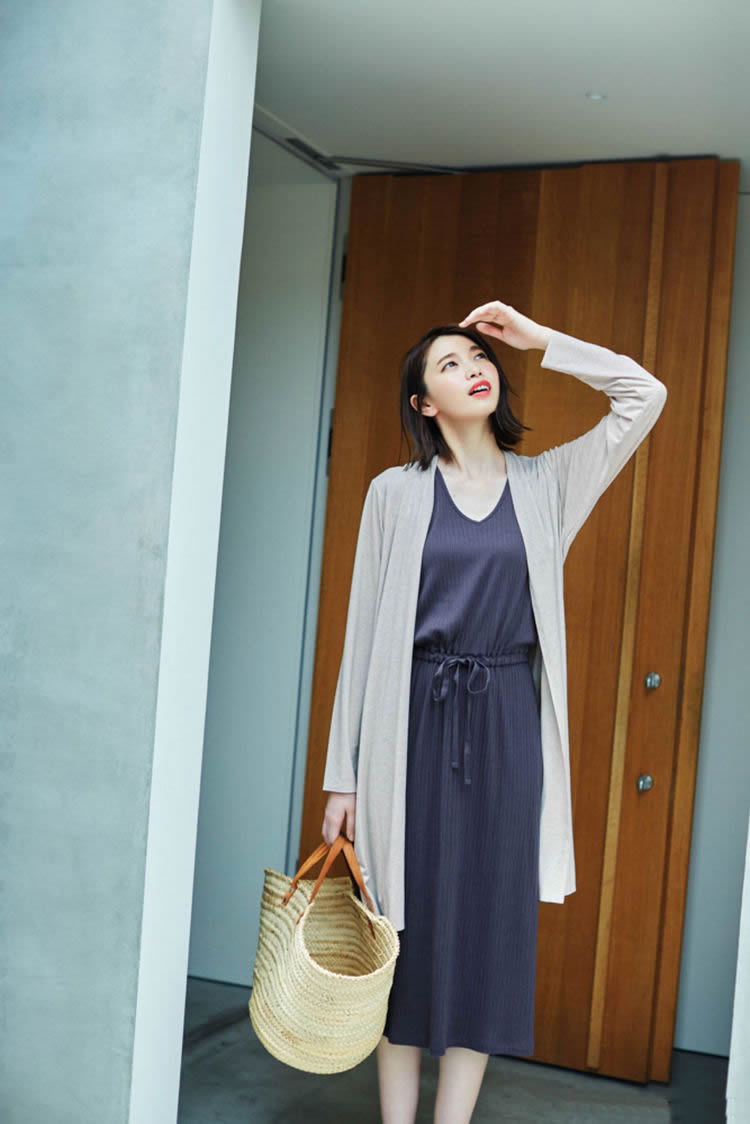 在这个居家穿搭系列中,依然体现了优衣库的特色:简单基础、实用大方,在精致程度上有所收敛,并没有运用耳环、项链这些配饰,仅仅用一根发带就完成了精致转变,这样的轻松状态更体现出居家休闲的自在舒适。
